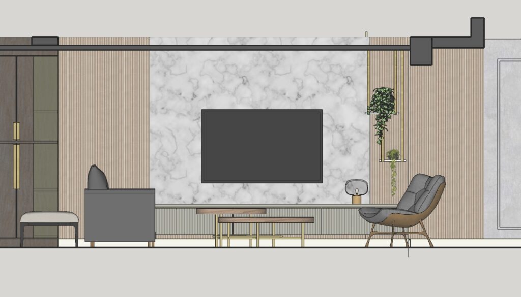Every internal decision — from colour and materiality to furniture layout — is calibrated to reinforce the spaciousness, comfort, and refinement of the home, creating an interior that is modern, elegant, and attentive to the qualities of its original architecture.